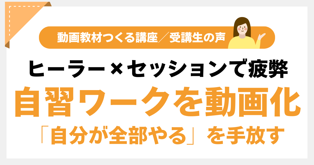 本記事でご紹介するAさんの事例は、「まだリリース前」「ゼロイチの段階」の方にとって、非常に親近感が湧く内容です。 特に、ヒーラーやセラピストにありがちな「お客様のためにと頑張りすぎて、自分が疲弊してしまう(オーバーワーク)」という課題に対し、「セッションの前(後)に取り組むワーク」を動画化することで、セッションの時間を有効に使えるようになりました。